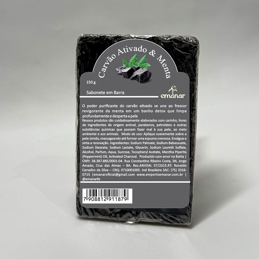 O Sabonete de Carvão Ativado e Menta da Emanar une o poder de adsorção do carvão ativado, que remove impurezas e toxinas da pele, com a refrescância natural da menta, que estimula, acalma e revigora os sentidos.